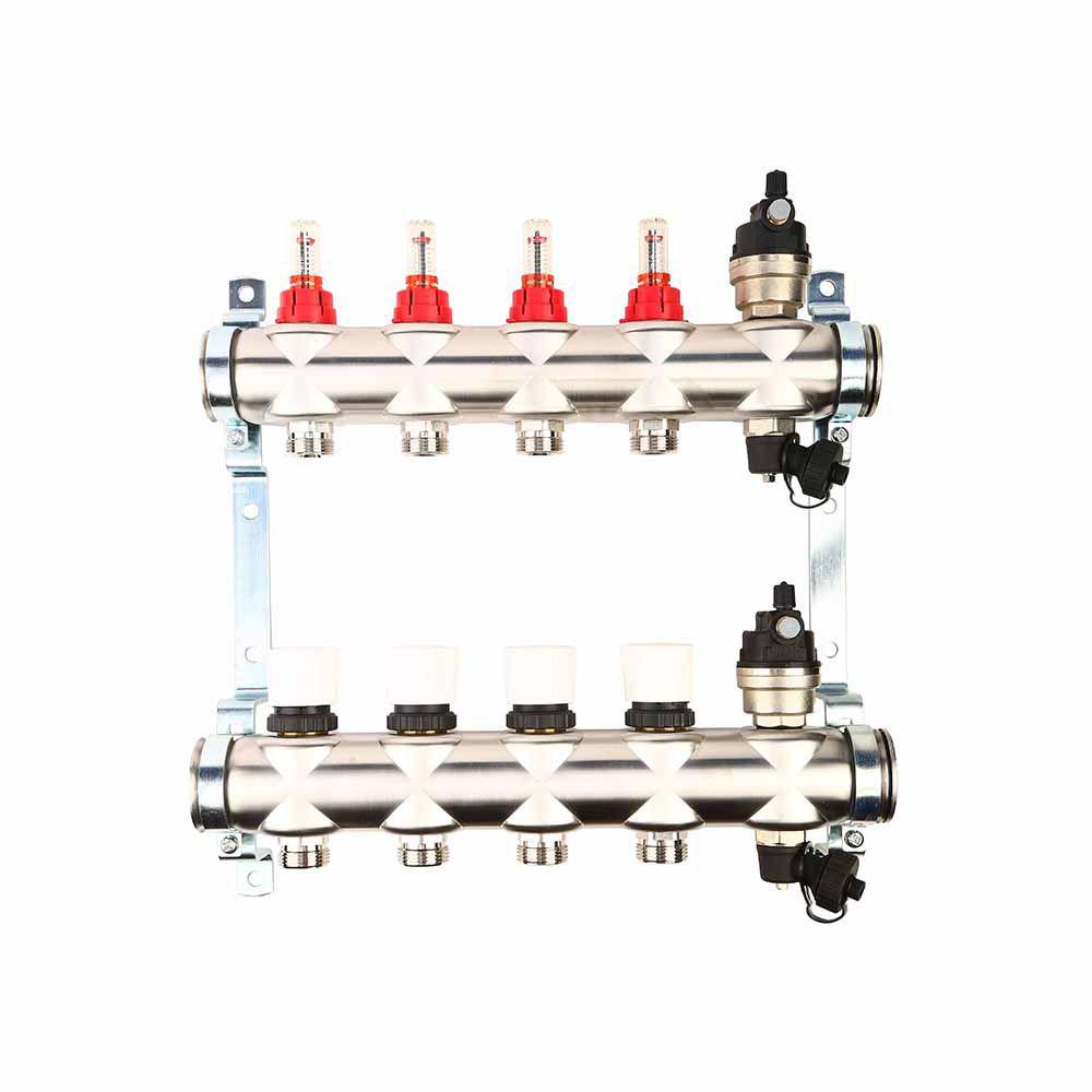 stainless steel 304 manifolds with 16 type flow meters. auto air vent ,drain valve and outputs of the Eurocone standard