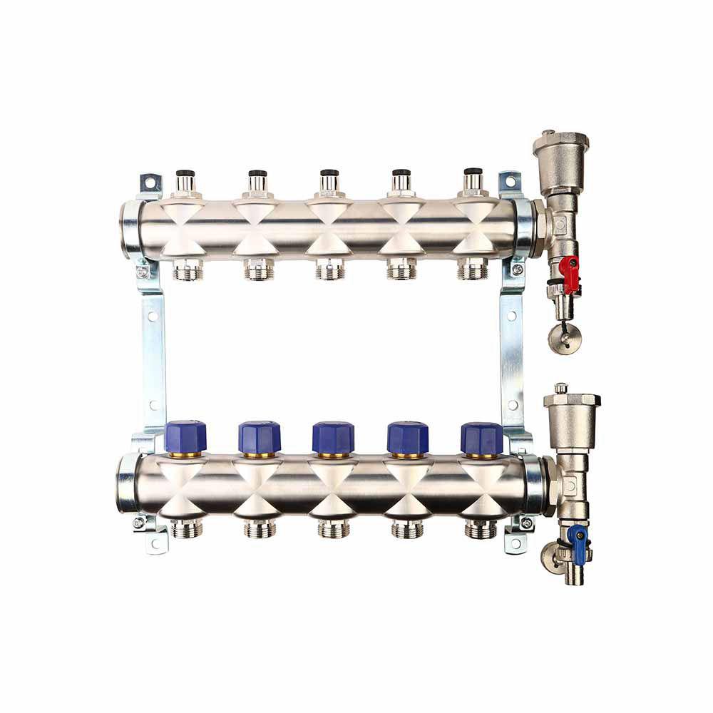 stainless steel 304 manifolds with thermostatic, 19 type balancing valves,brass auto air vent and Eurocone outlets